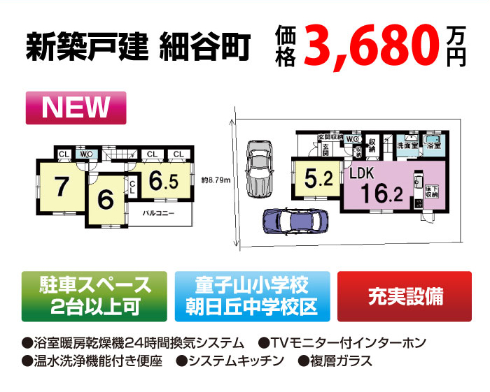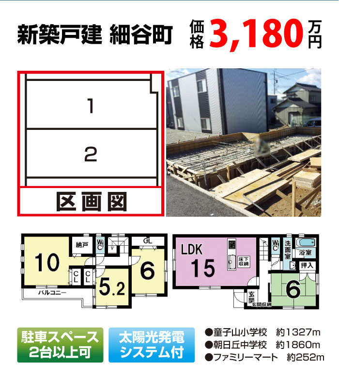 【物件概要】■豊田市細谷町4丁目20-14■土地/130㎡■建物/96.07㎡■土地権利/所有権■都市計画/市街化区域■用途地域/工業地域■建ぺい/60%容積率/200%■構造/木造パワーボード貼り住宅屋根用化粧スレート葺2階建■愛環鉄道新上挙母駅 徒歩21分■2013年03月入居可能予定■建築確認番号/KS112-3110-00827号■設備/中部電力・都市ガス・上下水道